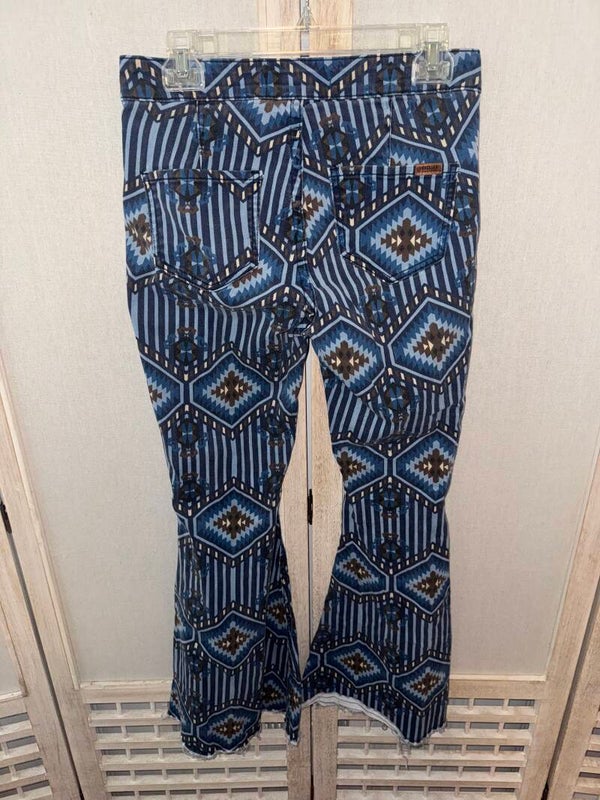 Rock & Roll Denim Ladies Navy Aztec Bell Bottoms Jeans Size 28 X 30