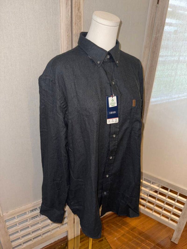 IZOD Mens L/G Long Sleeve Button Down Shirt Recycled Fabric Gray New