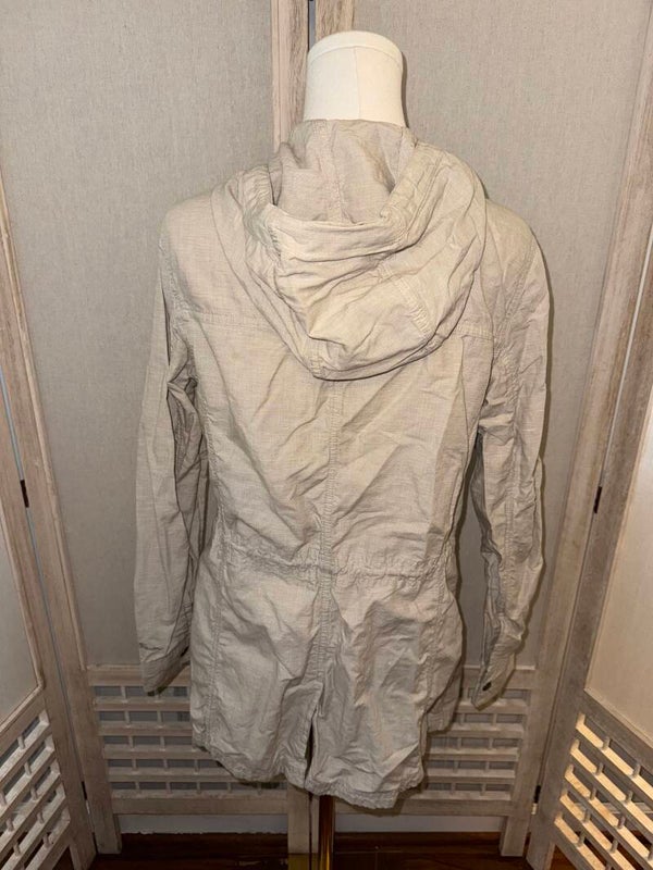 Eddie Bauer Womens Beige Hooded Lightweight Utility Jacket Coat Size M