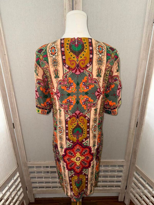 Keywords: tunic dress, shift dress, boho dress, bohemian dress, paisley dress, printed dress, casual dress, summer dress, colorful dress, festival dress, womens dress, vacation dress