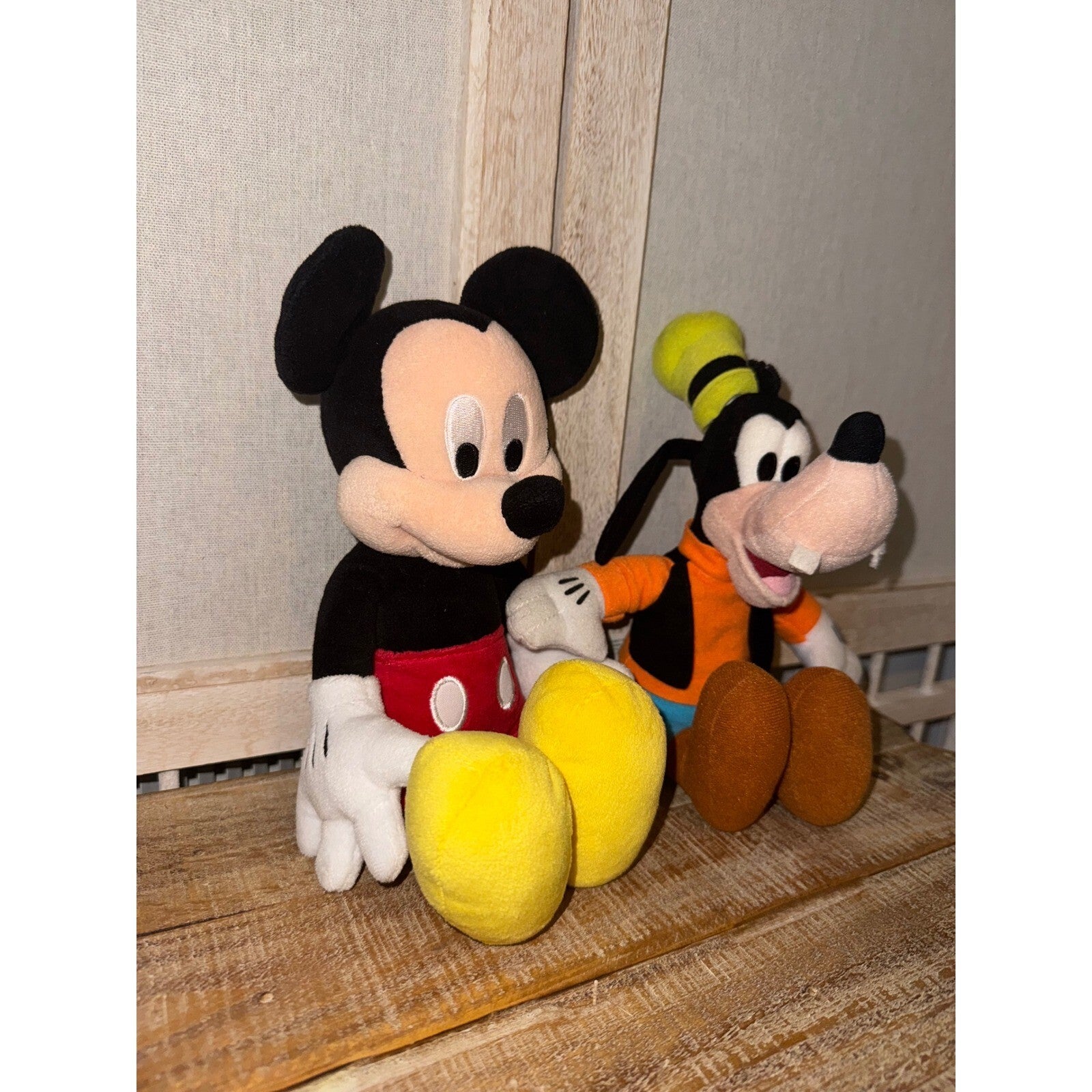 Bring the magic of Disney home with this adorable Mickey Mouse and Goofy plush duo! These lovable pals are ready to add a touch of whimsy to any space. Imagine the joy they'll bring, their soft, huggable forms inviting endless cuddles and playtime adventures. With their iconic designs and bright, cheerful colors, these plush toys capture the timeless charm of Disney's most beloved characters. Each plush is carefully crafted with attention to detail, ensuring a high-quality collectible that will be cherished for years to come. Perfect for decorating a child's bedroom, adding a playful touch to a nursery, or simply brightening up your favorite reading nook.