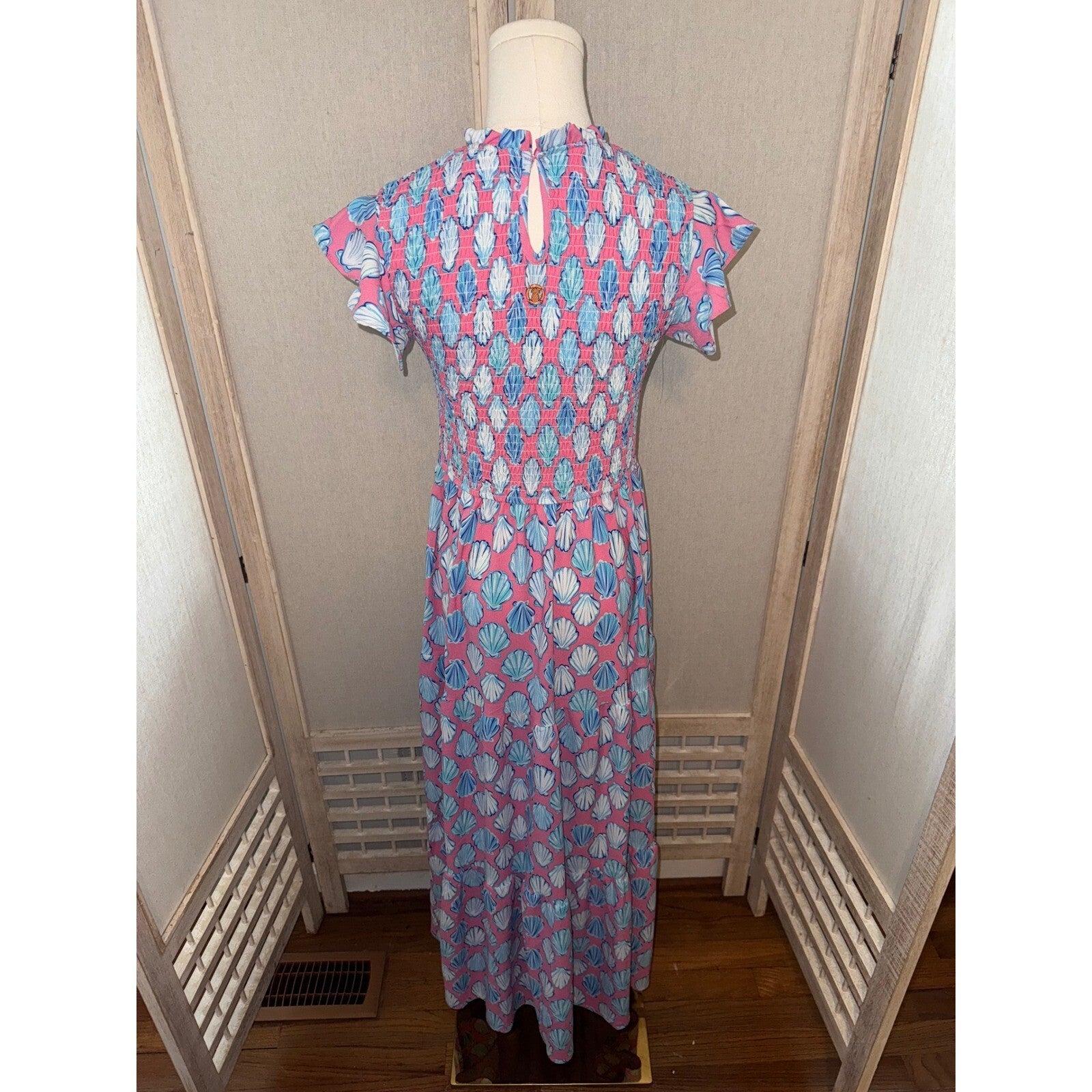 Simply Southern Smocked Maxi Dress Pink Blue Shell Print Size Small