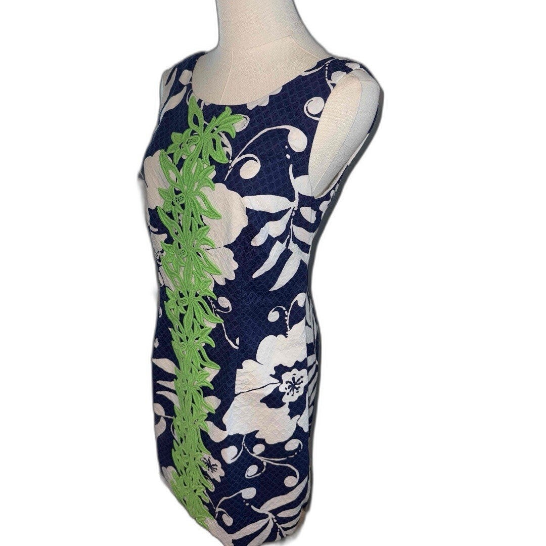 The Lilly Pulitzer Women's Delia Shift Dress in size 2 is a stylish and colorful tropical floral dress perfect for casual occasions. Made from 100% cotton, this sleeveless dress features a round neckline and a short length, offering a preppy and effortless style. With its blue color and shift silhouette, this dress by Lilly Pulitzer is a chic and comfortable choice for women looking to add a touch of tropical flair to their wardrobe.