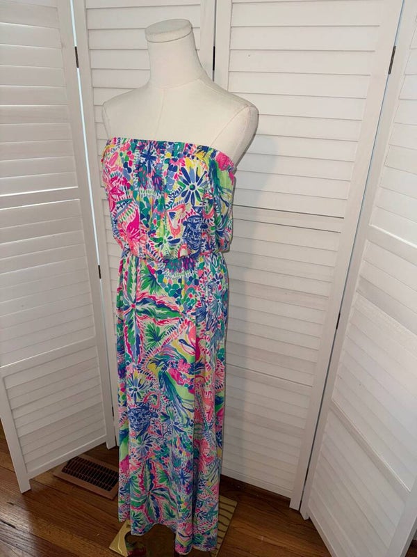 Keywords: Lilly Pulitzer, Strapless Dress, Maxi Dress, Colorful Print, Resort Wear, Summer Dress, Bohemian, Beach Dress, Tropical Print, Medium, Womens Dress, Casual Dress, Boho Dress