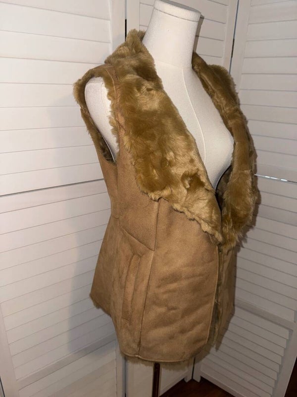White Black Market Faux Suede Vest with Faux Fur Collar Tan Brown Size Small