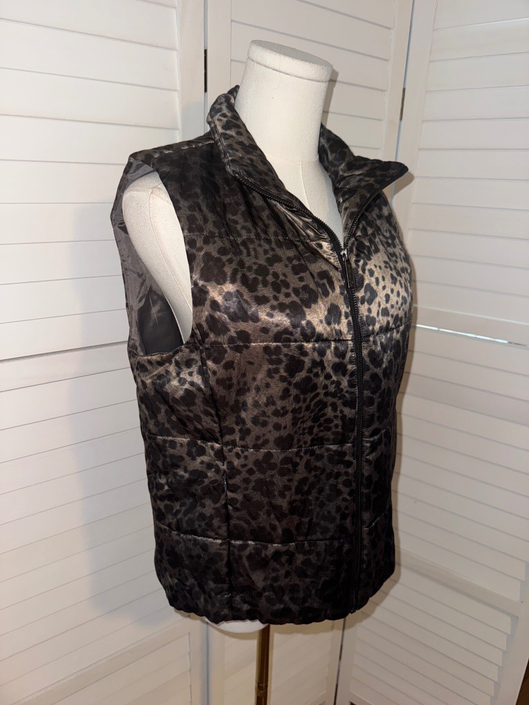 Keywords: Kenneth Cole Reaction, Vest, Womens, Small, Puffer Vest, Animal Print, Leopard Print, Sleeveless Top, Quilted Vest, Outerwear, Brown, Black, Fall Fashion, Casual Vest