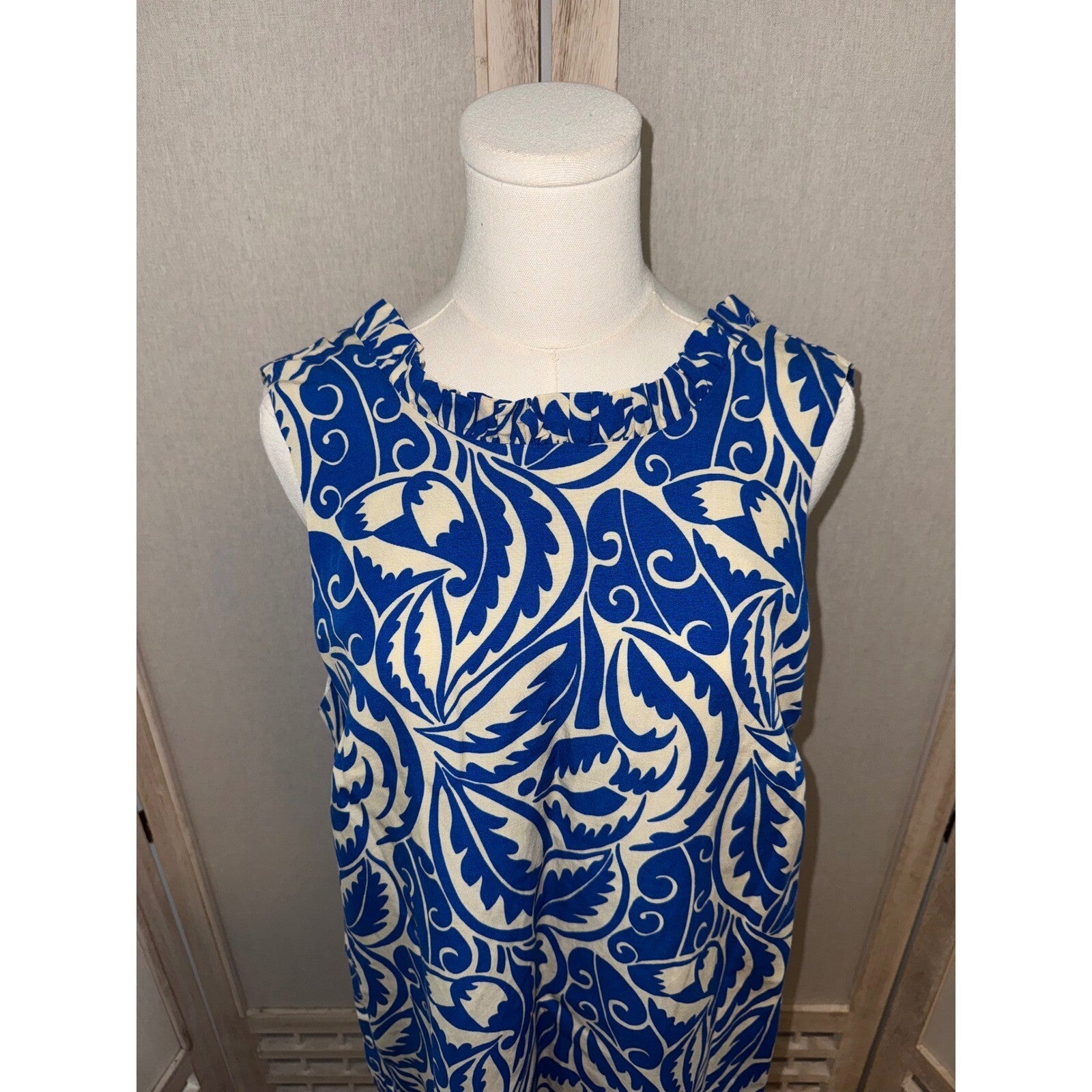 Step into effortless style with this sleeveless dress, a vibrant statement piece perfect for sun-soaked days. A refreshing blue and white botanical-inspired pattern enlivens the easy to wear silhouette of this relaxed-fit dress. The comfortable sleeveless design and breathable fabric make it ideal for warm weather, while the eye-catching print ensures you stand out. Whether you are going on a summer date, attending a beach party, or simply running errands around town, this dress is perfect for any occasion.