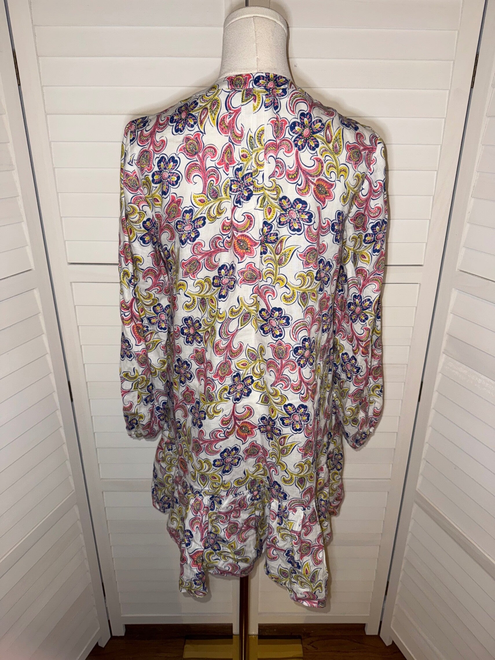 Boden Floral Print Tunic Mini Dress Long Sleeve Pockets Colorful Size 2