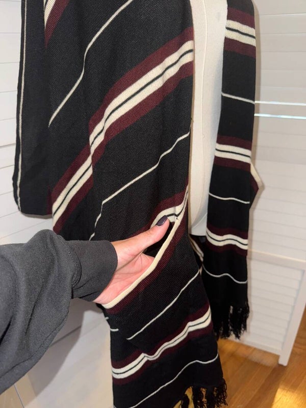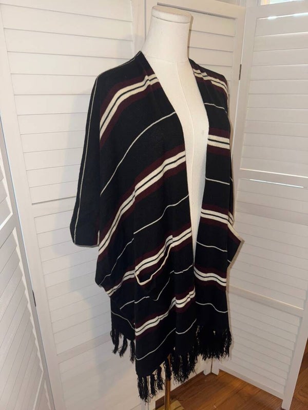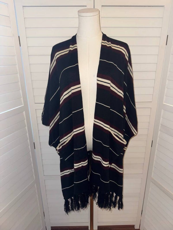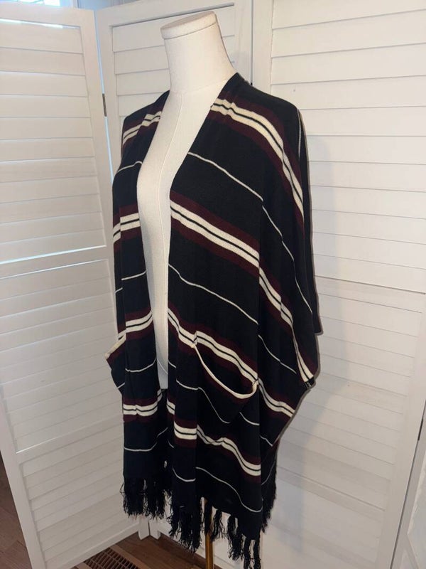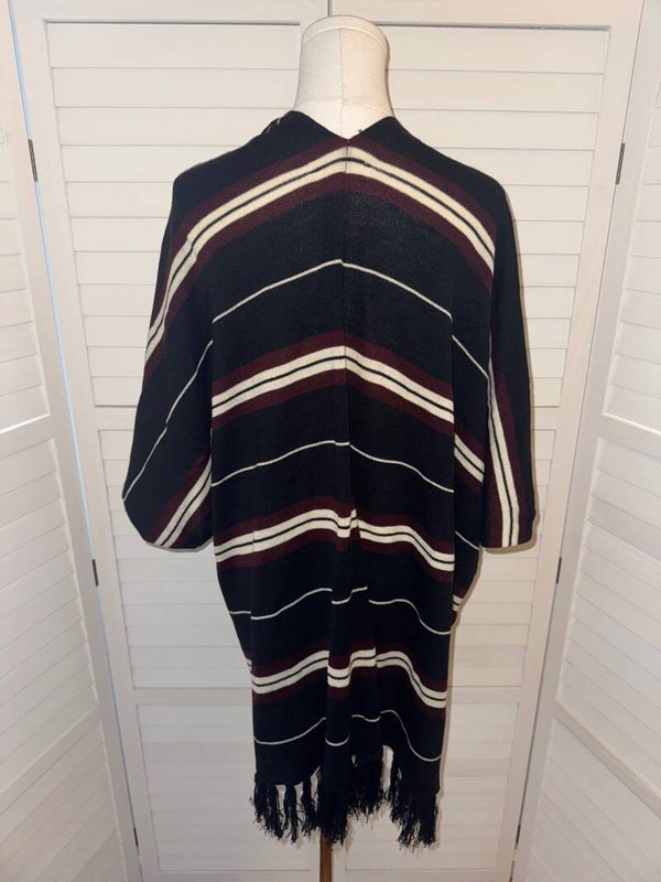 Dress Up Striped Kimono Cardigan Poncho Fringe Pockets Womens M