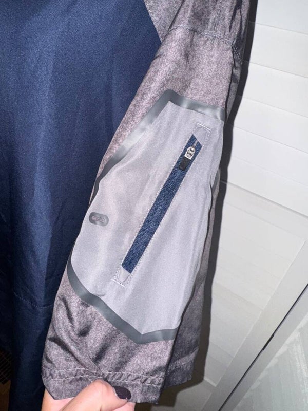 Embrace effortless style and comfort with this Holloway pullover jacket. The smooth navy body offers a sleek canvas, while the textured gray sleeves add a touch of sophisticated contrast. Designed for easy movement, the quarter-zip neckline allows for adjustable ventilation, perfect for a brisk morning round of golf or a casual evening stroll. The functional zippered pocket on the sleeve adds a practical element for securely storing small essentials. This versatile jacket is ideal for a sporty outing, a relaxed weekend, or layering on a cool day.