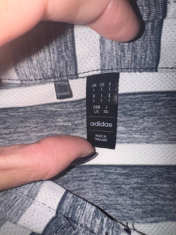 Adidas Men's Gray White Stripe Golf Polo Shirt Short Sleeve Performance Size 2XL