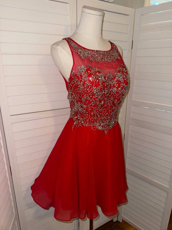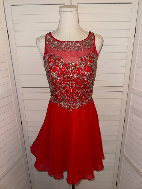 JVN by Jovani Red Beaded Illusion Open Back Short Homecoming Dress Size 6