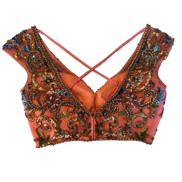 Sherri Hill Coral Sequin Embellished Crop Top Tulle Skirt Prom Dress Gown Size 0