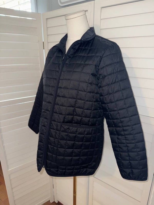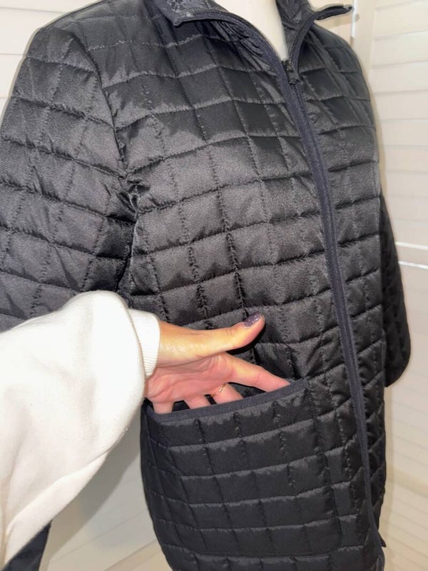 Lands End Womens Quilted Jacket Full Zip Pockets Black Size SP
