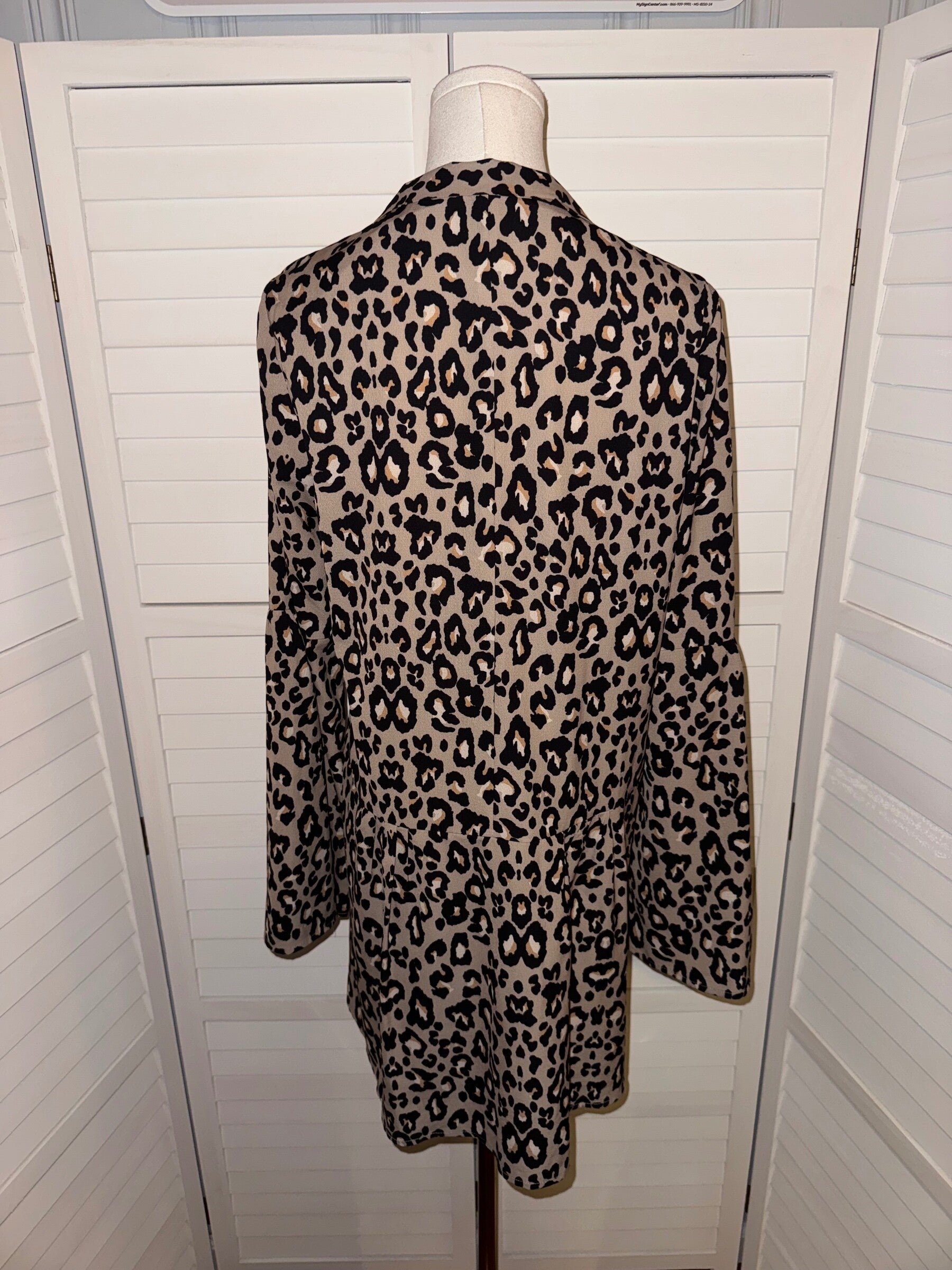 Keywords: Fab'rik, Leopard Print, Animal Print, Tunic Top, Keyhole Neck, Tie Neck, Bell Sleeves, Women's Top, Size Large, Bohemian, Chic, Fashion Top, Statement Piece, Fall Fashion, Versatile Top