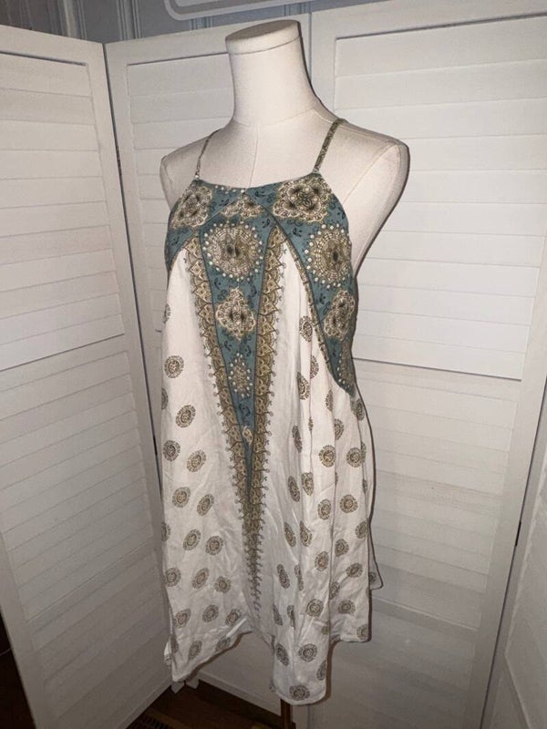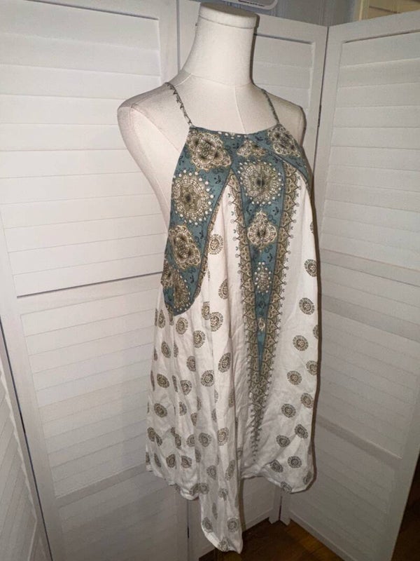 ONeill Womens Mini Dress Strappy Bohemian Print Viscose Cotton Size L