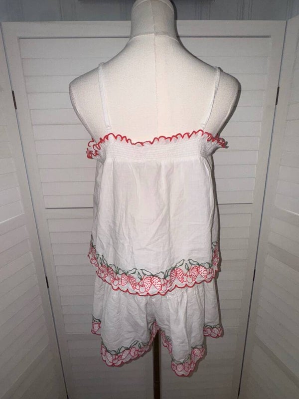 Joie Sleep White Cotton Strawberry Embroidered Smocked Pajama Set Top Shorts M
