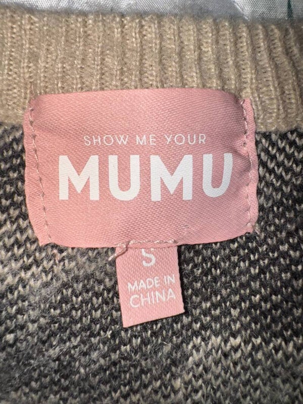 SHOW ME YOUR MUMU Tiger Knit Sweater Beige Black Long Sleeve Crew Neck Size S