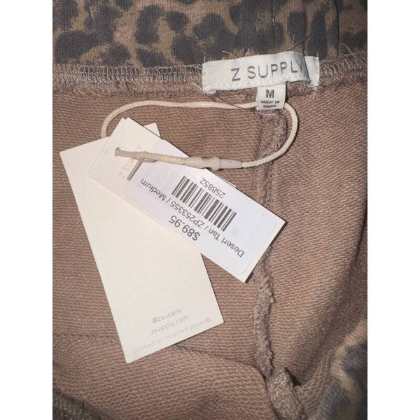 Z Supply Leopard Print Wide Leg Lounge Pants Tan Grey Drawstring Size Medium