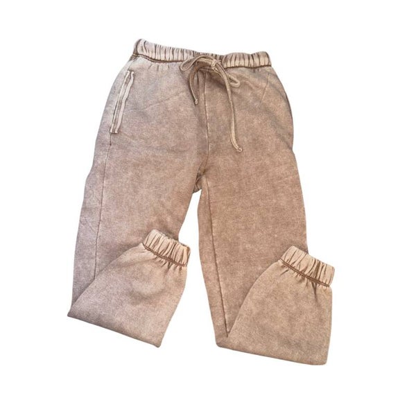 Effortless comfort meets casual cool in these washed tan joggers from ZENANA. Imagine sinking into the incredibly soft fabric, feeling the relaxed fit that moves with you through your day. The unique washed finish gives these pants a perfectly lived-in vibe, while the functional drawstring and convenient zippered pocket add a touch of modern utility. The elasticized cuffs create a flattering silhouette that looks great with your favorite sneakers or slides. Perfect for a cozy day at home, running errands, or a casual weekend outing.