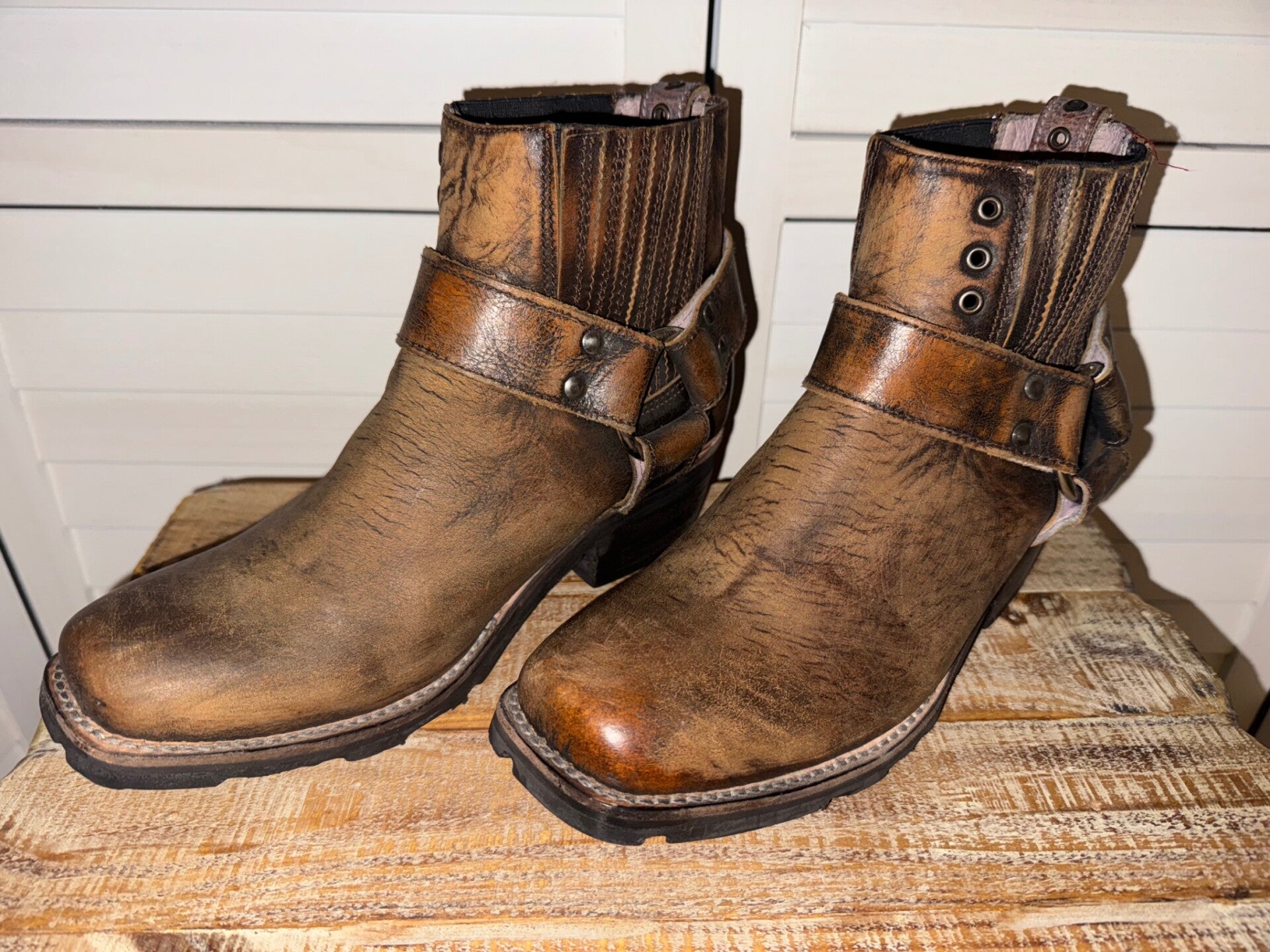Freebird By Steven Leather Harness Boots Brown Square Toe Block Heel Size 9