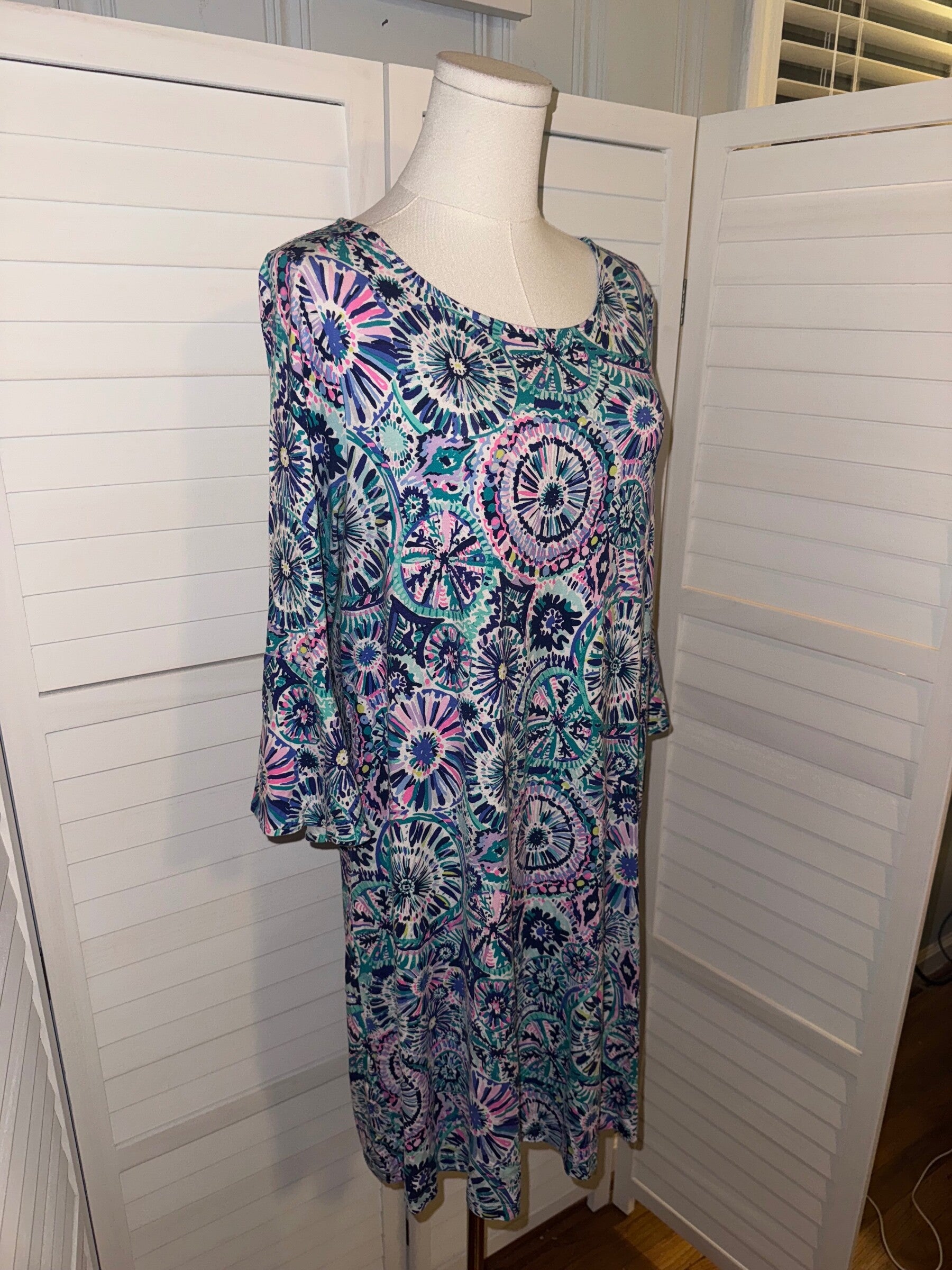 Lilly Pulitzer Dress Multi Color Print Long Sleeve Scoop Neck Shift Women L