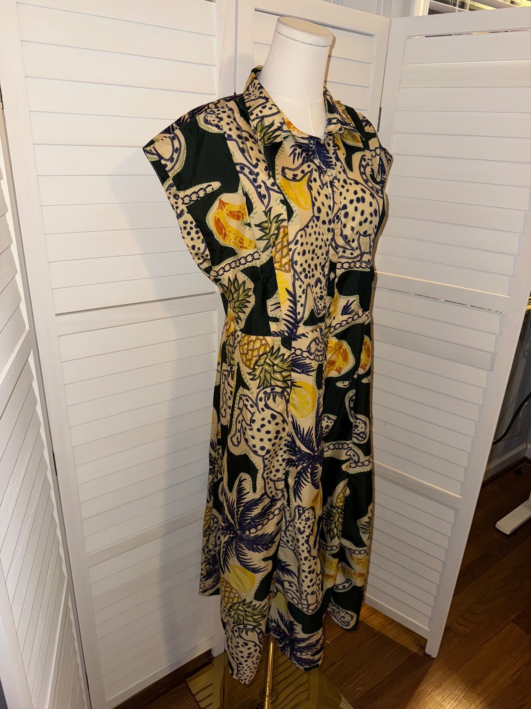 TRULY 4 YOU Women's Tropical Print Button Down Shirt Dress Size Large