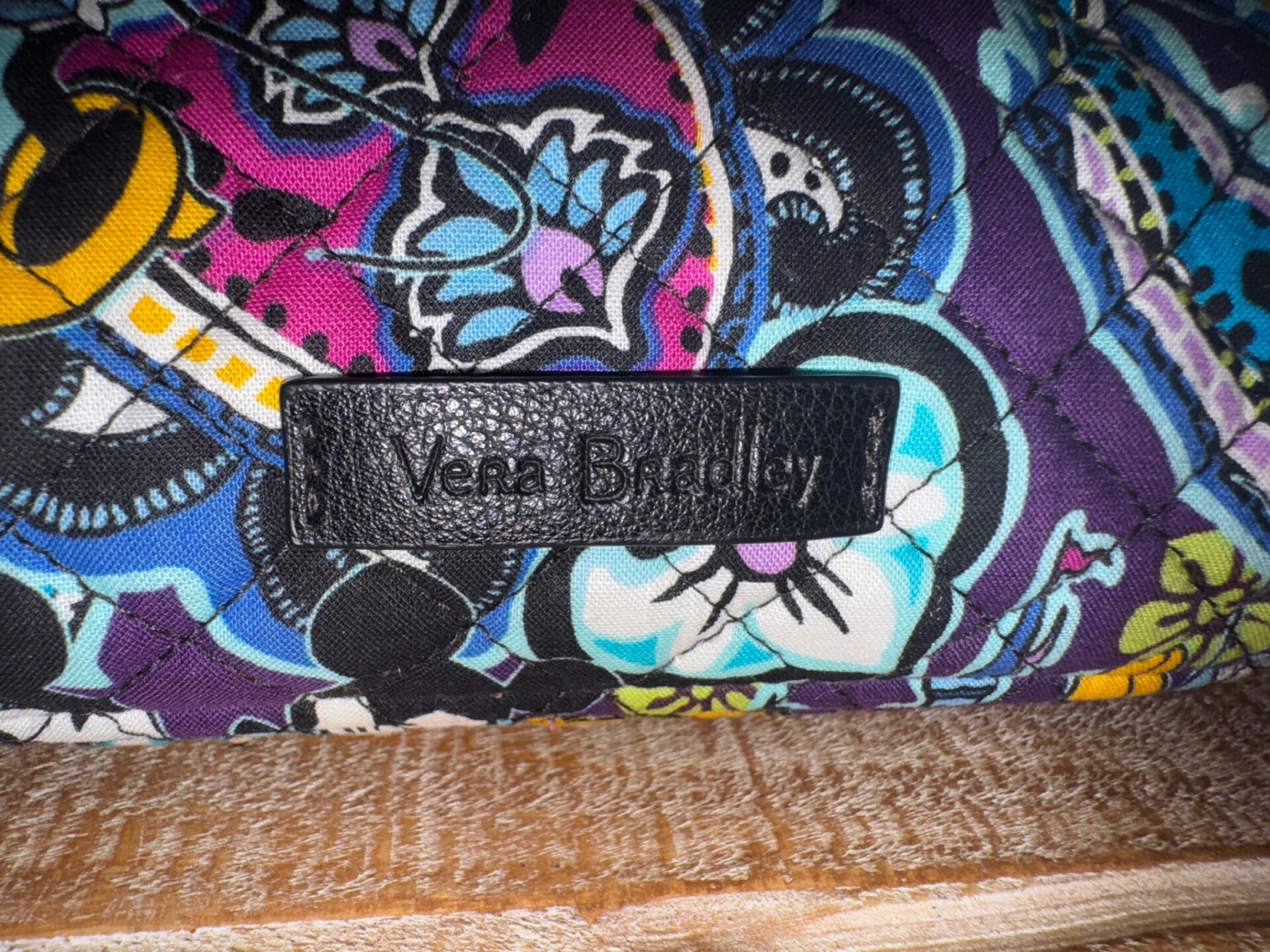 Unleash your inner magic with this vibrant Vera Bradley cosmetic bag, a playful blend of iconic Disney charm and bohemian paisley flair. Mickey Mouse dances amidst swirling patterns in shades of purple, pink, blue, and yellow, bringing a touch of whimsy to your everyday essentials. The quilted exterior offers a touch of luxury, while the practical zip-around closure keeps your makeup secure and organized. Perfect for travel, daily touch-ups, or keeping your vanity tidy with a dash of Disney delight, this bag is a delightful companion for any adventure.