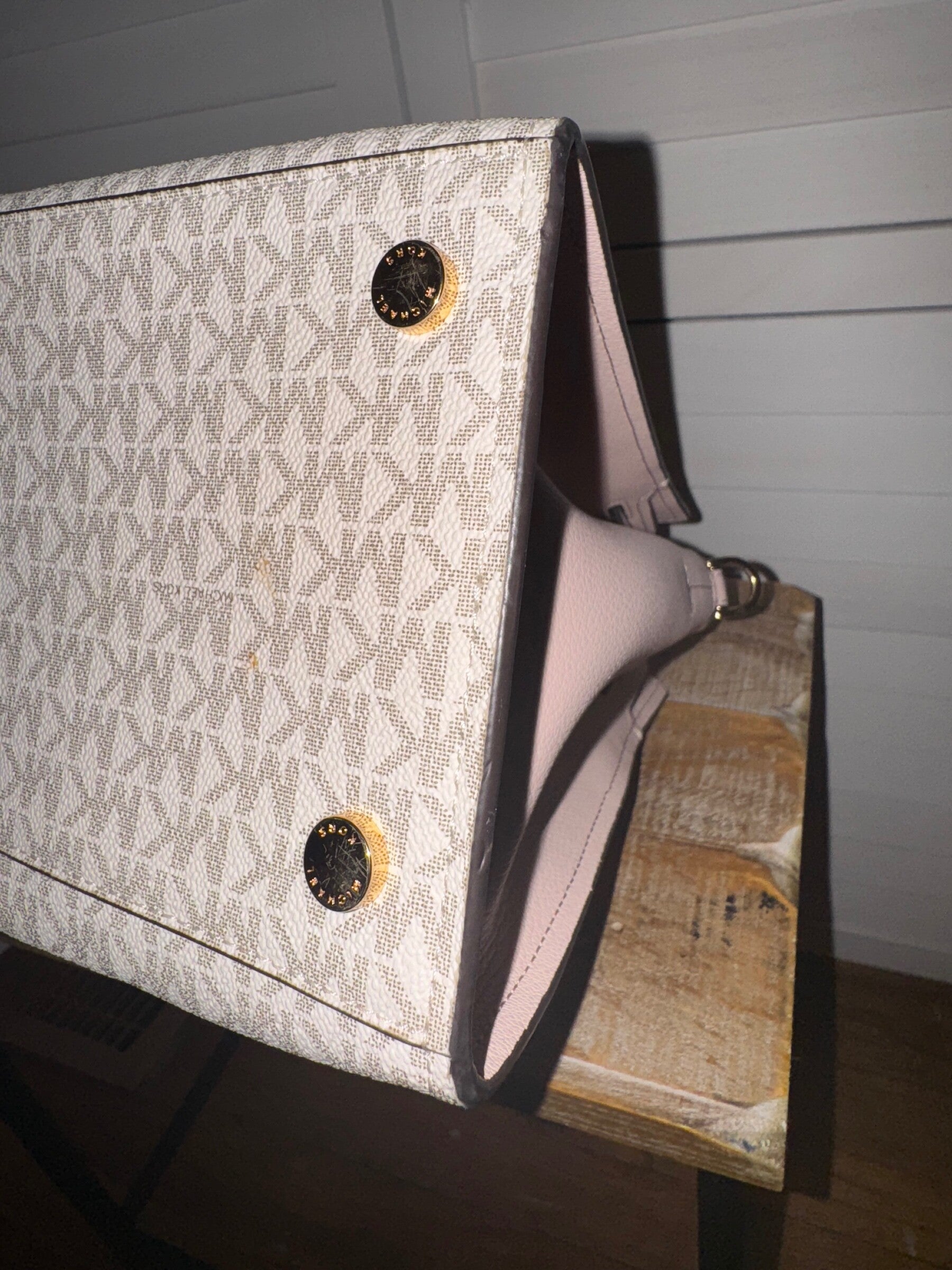 Keywords: Michael Kors, MK Signature, Tote Bag, Pink Leather, Gold Hardware, Designer Handbag, Everyday Bag, Chic, Elegant, Shoulder Bag, Satchel, Luxury