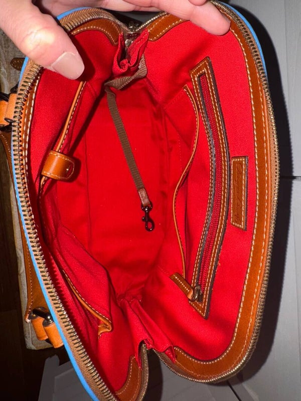 Dooney Bourke Pebble Grain Leather Satchel Blue Brown Top Handle Bag