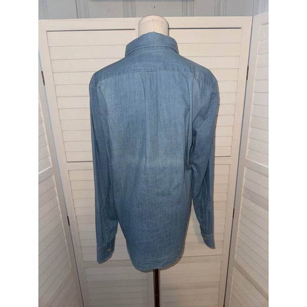 Vineyard Vines Slim Fit Whale Shirt Light Blue Chambray Button Down Men's Size S