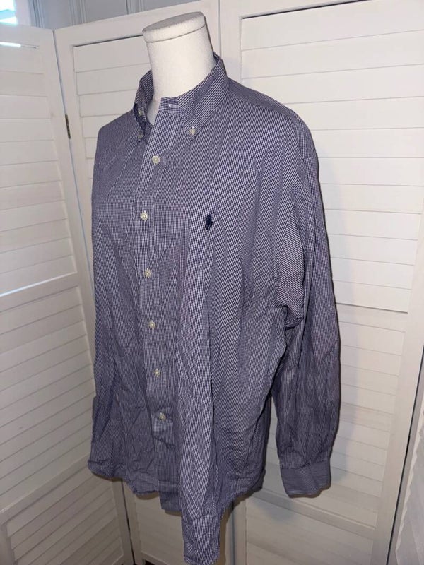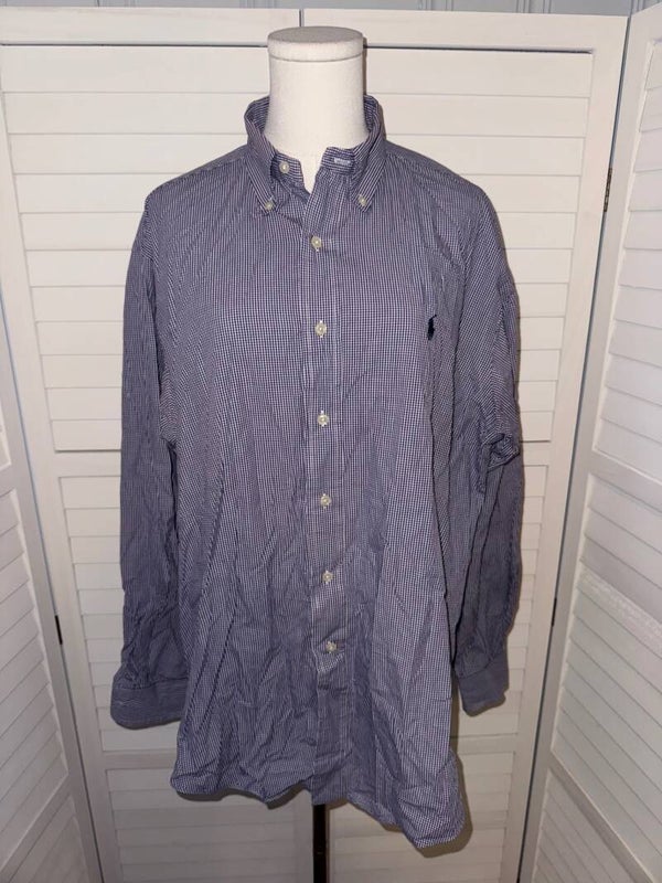 Ralph Lauren Yarmouth Gingham Button Down Shirt Men 16 34/35 Purple/White