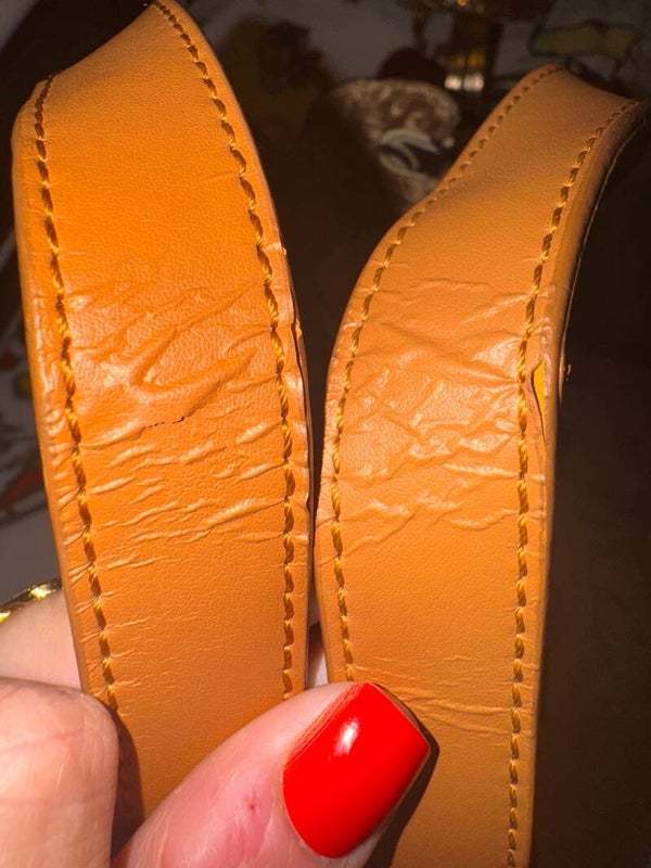 Some minor wear on top of straps and on bottom edge. Reference last pictures. Remaining exterior and interior in excellent condition.