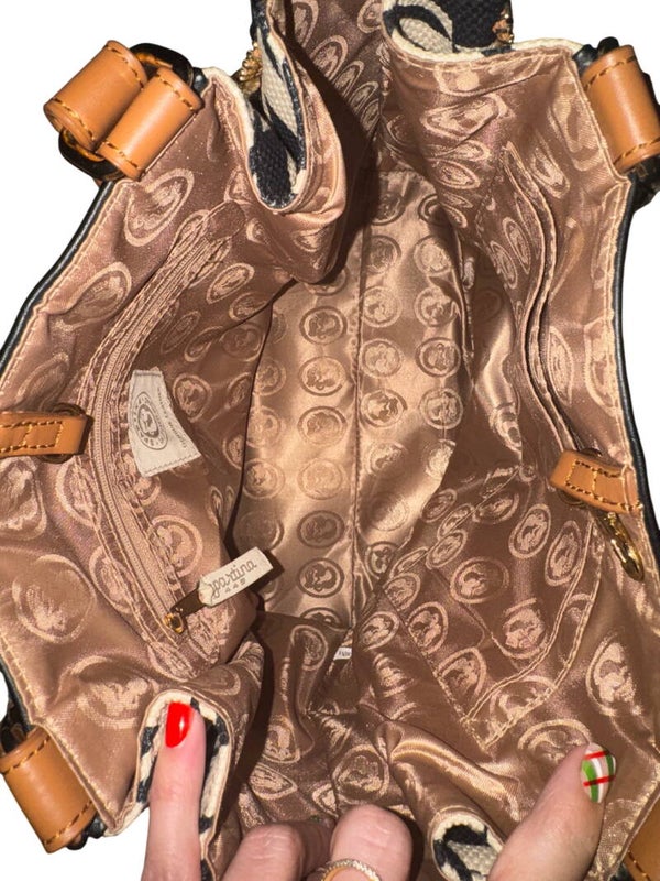 Keywords: Spartina 449, leather tote, houndstooth bag, women's handbag, designer tote, fashion accessory, everyday bag, travel tote, stylish purse, genuine leather
