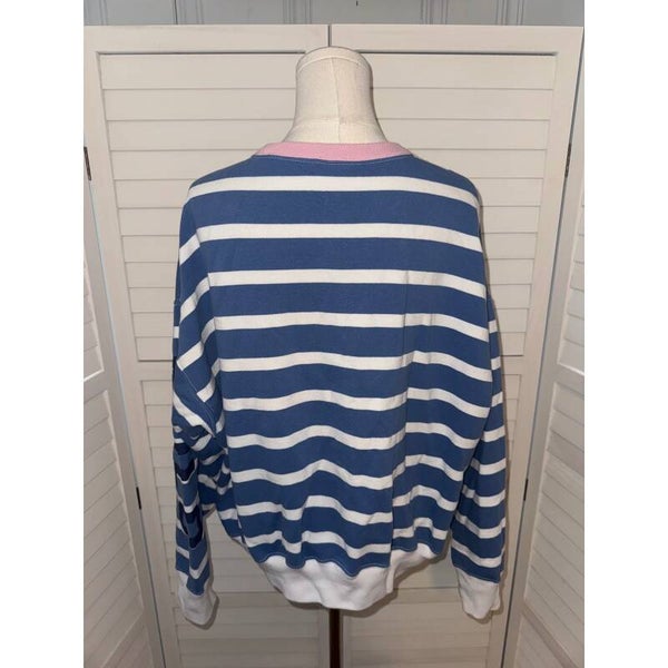 Polo Ralph Lauren Striped Crewneck Sweatshirt Blue White Pink Trim XL