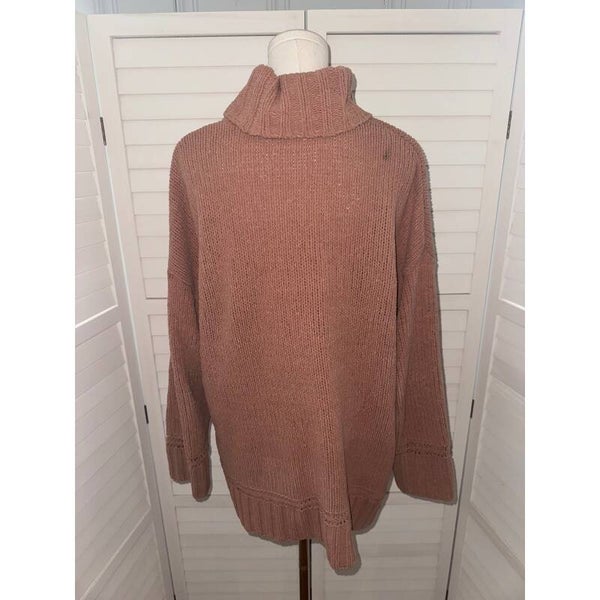 Aerie Cozy Knit Turtleneck Sweater Khaki Oversized Pullover Small