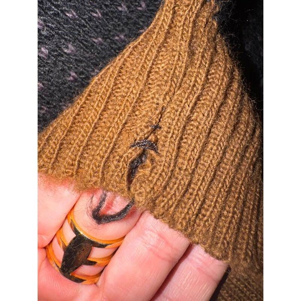 Some very minor pilling. bottom right seam needs minor stitch work on bottom but still intact.