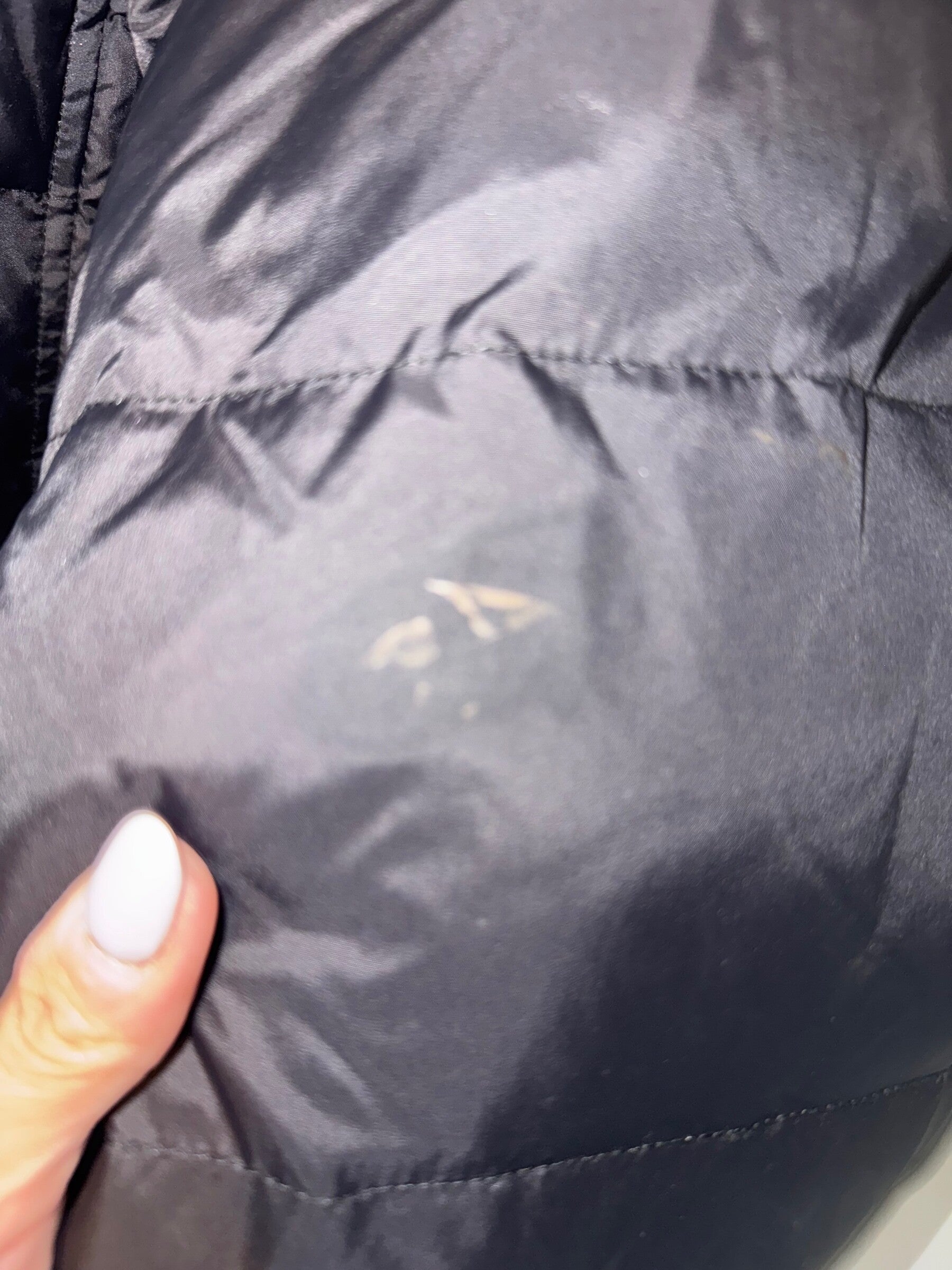 Small mark on left sleeve but barely noticeable. Have to be looking for it (5th picture).