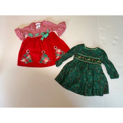 Keywords: Christmas dress, girls dress, holiday dress, baby dress, toddler dress, red dress, green dress, Bonnie Baby, size 12M, party dress, festive dress, holiday outfit, Christmas outfit
