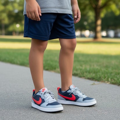 Keywords: Nike Court Borough, Kids sneakers, Toddler shoes, Youth athletic, Casual wear, Playtime ready, Sporty style, Everyday shoes, Durable footwear, Red and navy, Low top sneakers